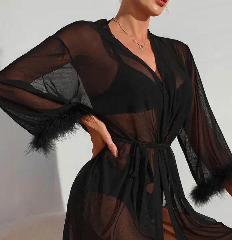 Якщо ви шукаєте елегантний пеньюар, прозорий халат, подарунок для коханої або образ для фотосесії, ця модель стане бездоганним вибором.